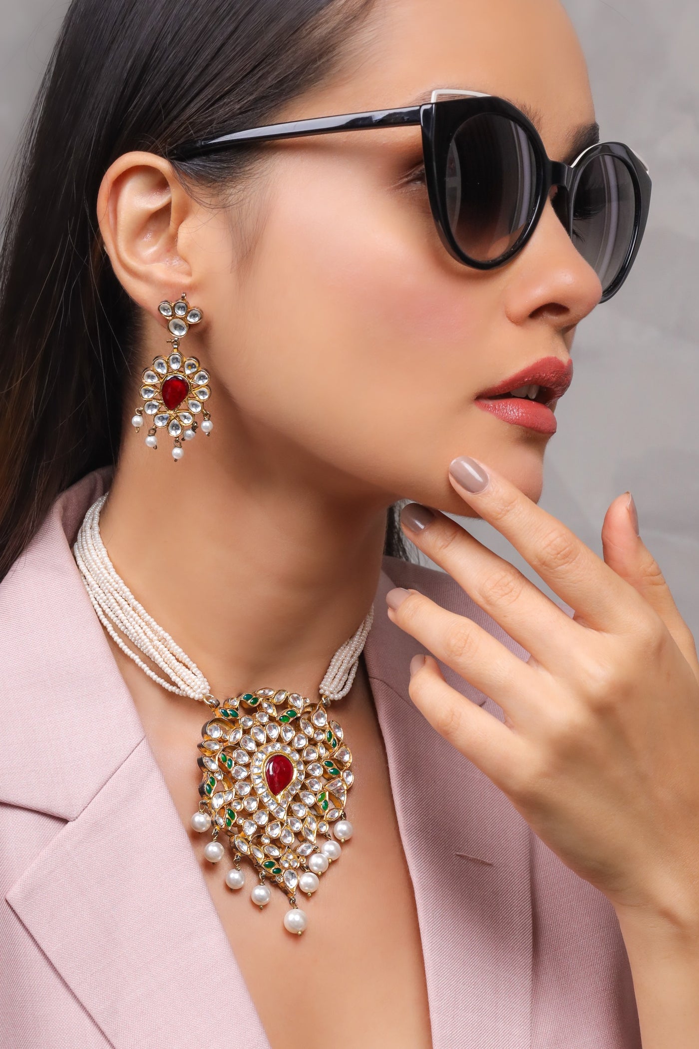Scarlet Cascade Pearl Necklace & Earrings